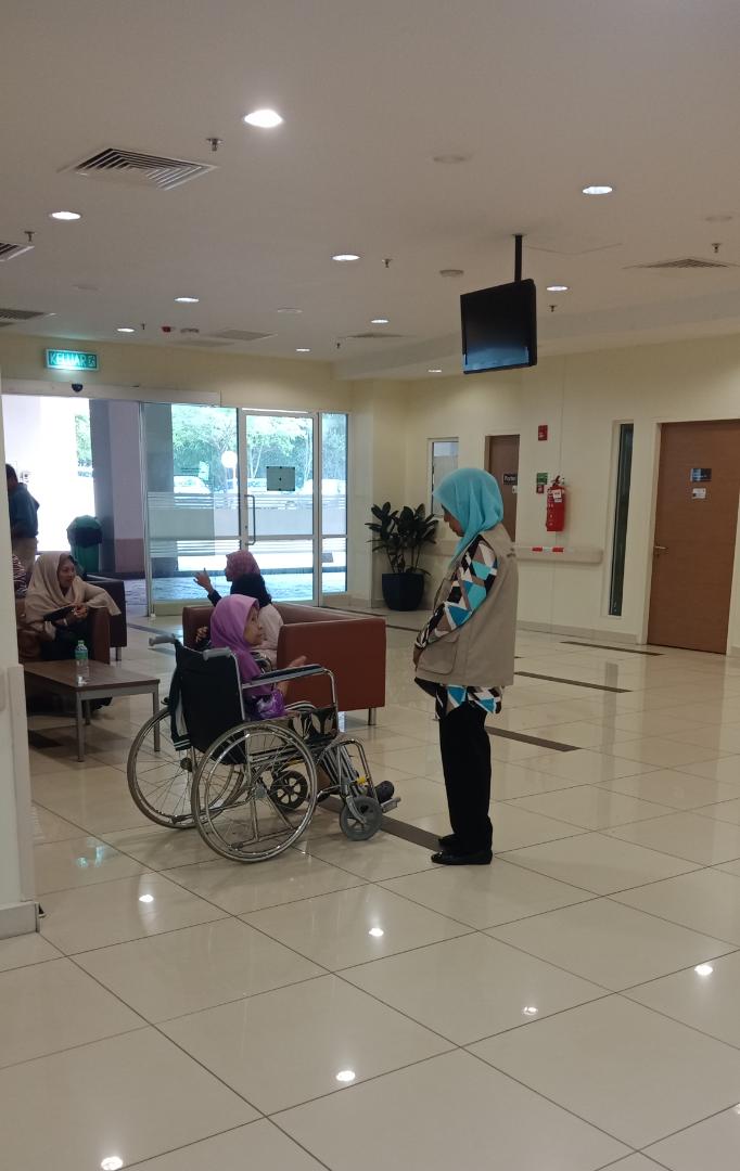Assisting a patient to the Registration Counter